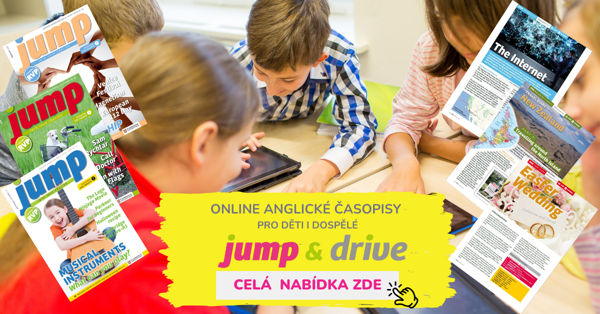 Více inspirace, slovíček a aktivit pro děti najdete např. v anglických online časopisech Jump a/nebo Drive, které si můžete prohlédnout a objednat zde. Udělejte z učení angličtiny příjemné a zábavné chvíle, které si děti zamilují!